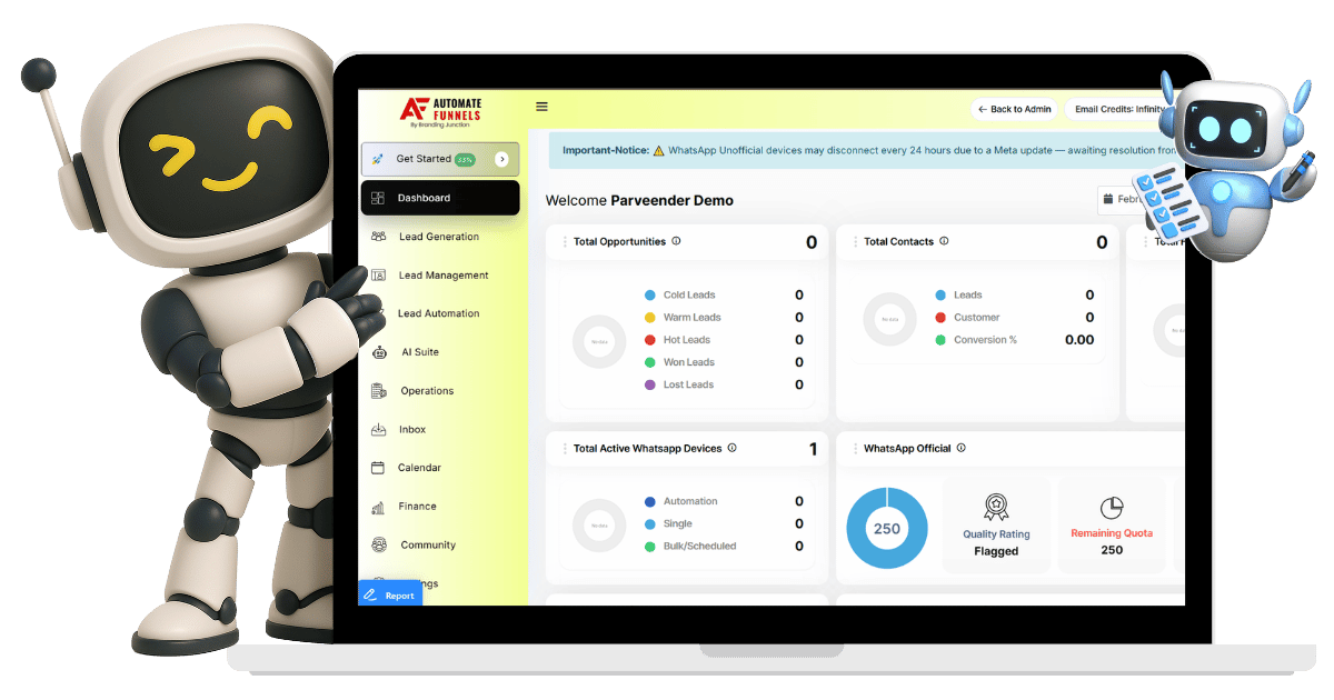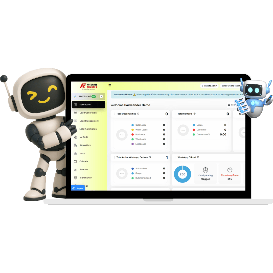 Automate Funnels combines funnels, landing pages, CRM, WhatsApp automation, email marketing, AI agents, course hosting, communities, appointment booking, gst invoicing and detailed analytics in one platform to manage and grow your business efficiently.